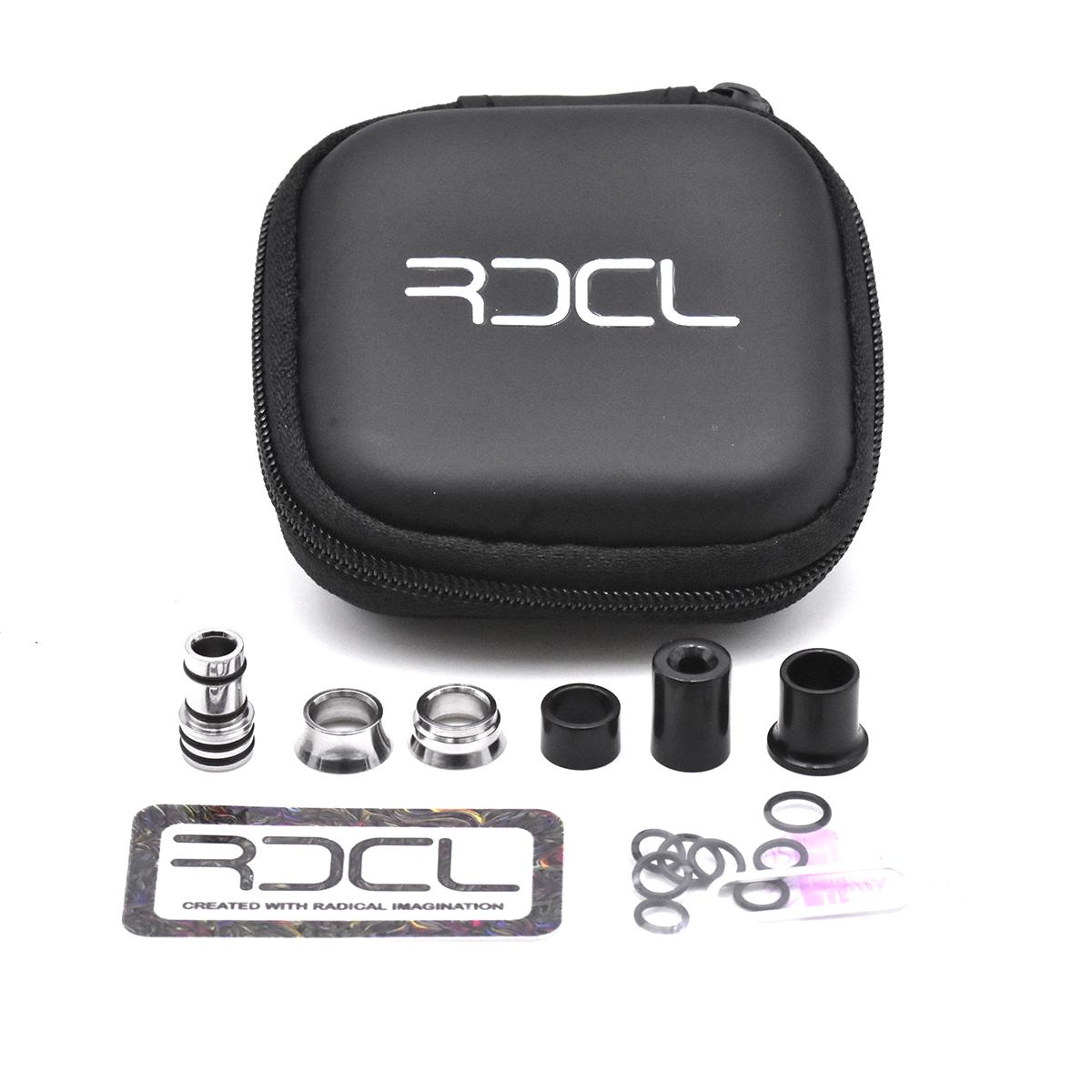 Each kit includes everything you need: a stainless steel base (4.5 mm bore), two stainless steel beauty rings (Trooper and Caping models), three black delrin sleeves, as well as a set of O-rings and an ejector tool. The set ensures perfect compatibility with 510 atomizers while providing a refined look and excellent mouthfeel.