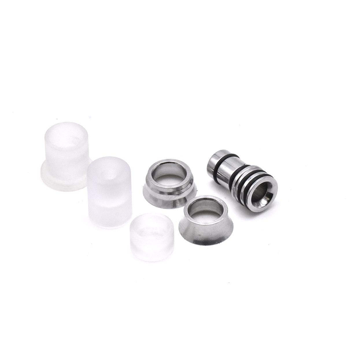 Each kit includes everything you need: a stainless steel base (4.5 mm bore), two stainless steel beauty rings (Trooper and Caping models), three frosted PC sleeves, as well as a set of O-rings and an ejector tool. The set ensures perfect compatibility with 510 atomizers while providing a refined look and excellent mouthfeel.