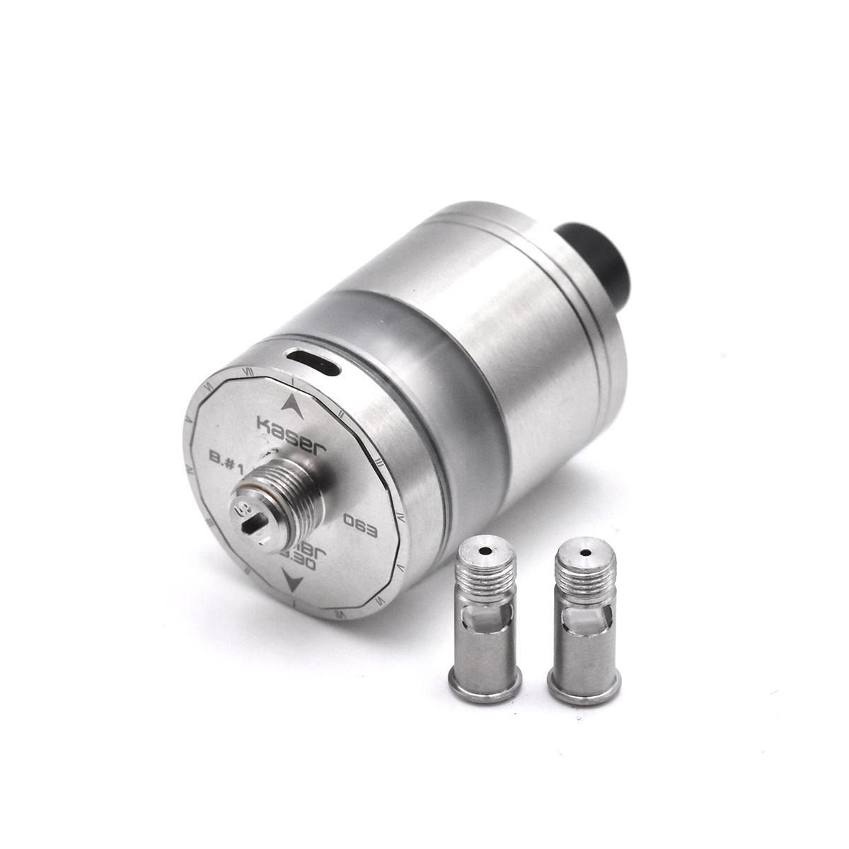 The airflow pin kit for the Kabiber 23.30 atomizer by Kaser Mods allows precise airflow customization. It includes 0.8 mm and 1.0 mm pins, providing an MTL-oriented airflow adjustment to suit individual vaping preferences.